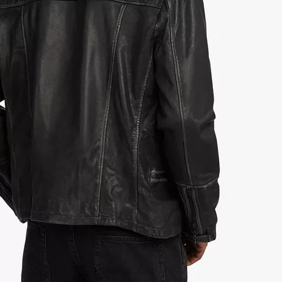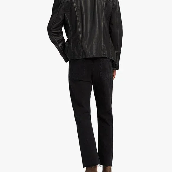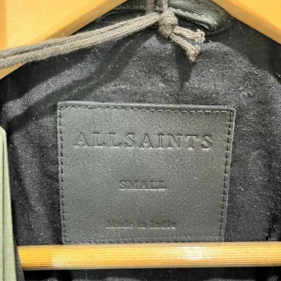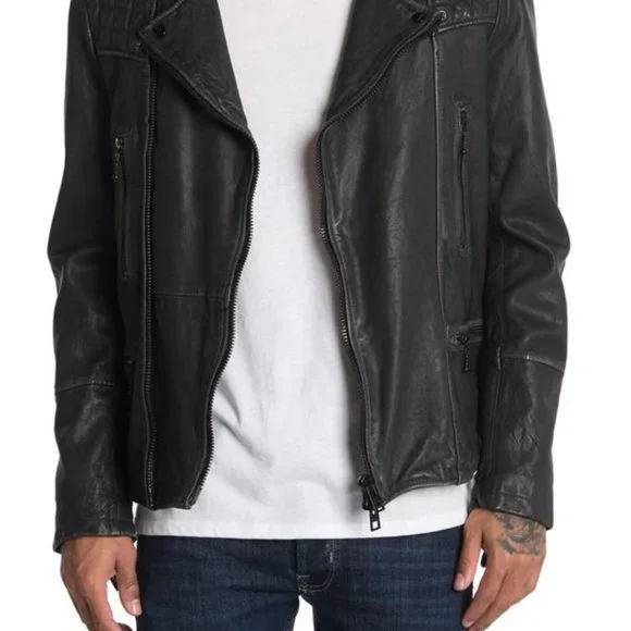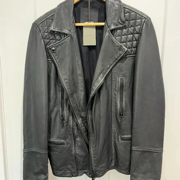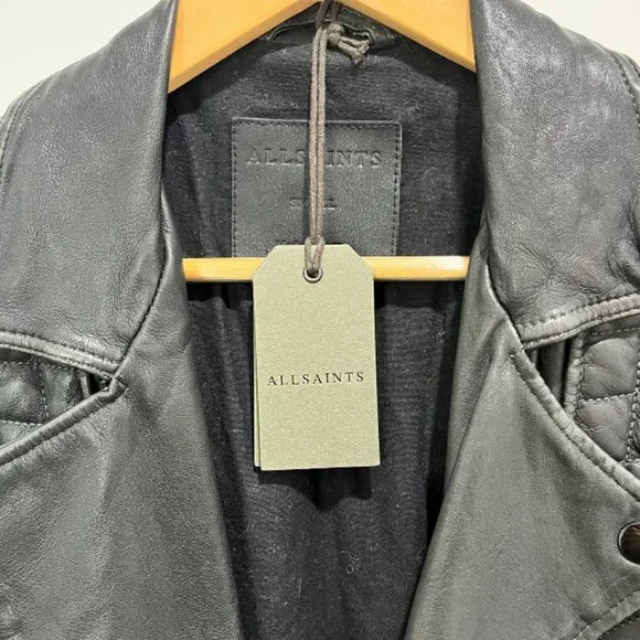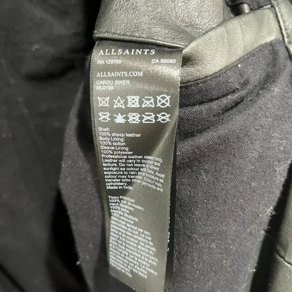 Brand new, with tags.Free expedited & tracked shipping included! Crafted in India from hand-burnished premium lambskin, this Cargo biker jacket from AllSaints exudes laid-back luxury.Cut in a slim fit, it is adorned with classic zip detailing to the front and chromatic chessboard padding to the shoulders.Combine with dark jeans and a plain black T-shirt for a rugged look.